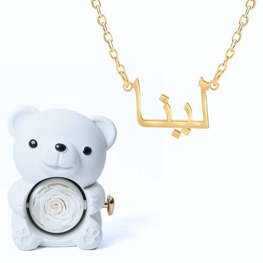 Ours Éternel & Collier Prénom Personnalisé Arabe